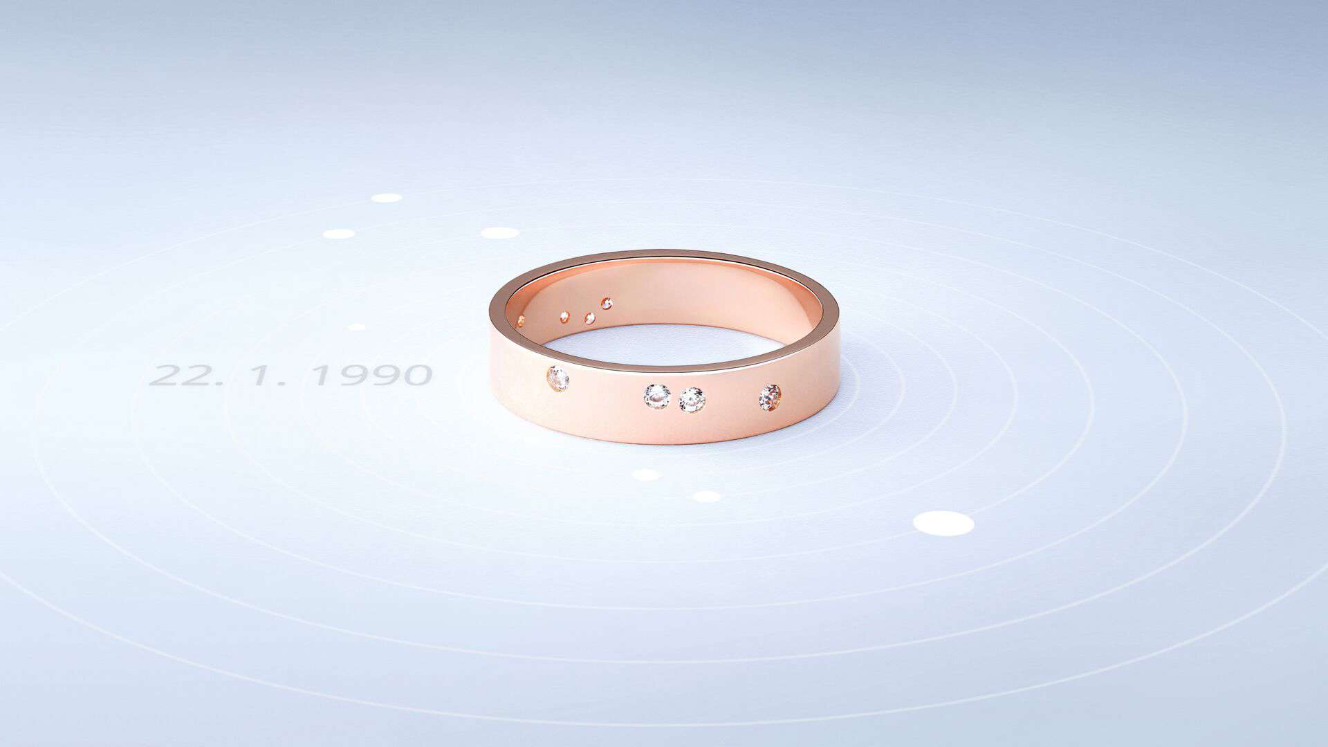 V tom je ta unikátnost. Zastaví se váš jedinečný okamžik, tj. vaše datum svatby a přenese se do vašeho prstenu. Jinými slovy budete mít postavení planet v okamžiku vaší svatby zanesené do designu vašeho snubního prstenu.