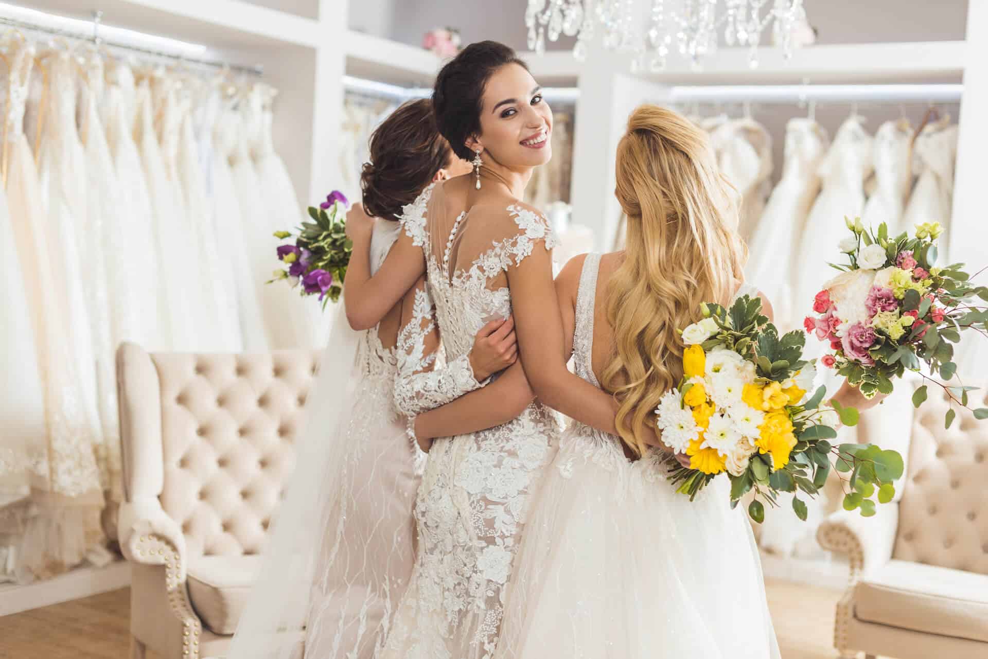 Home/Mediální soubory/Nevěsty s kyticí v šatech ve svatebním salonu