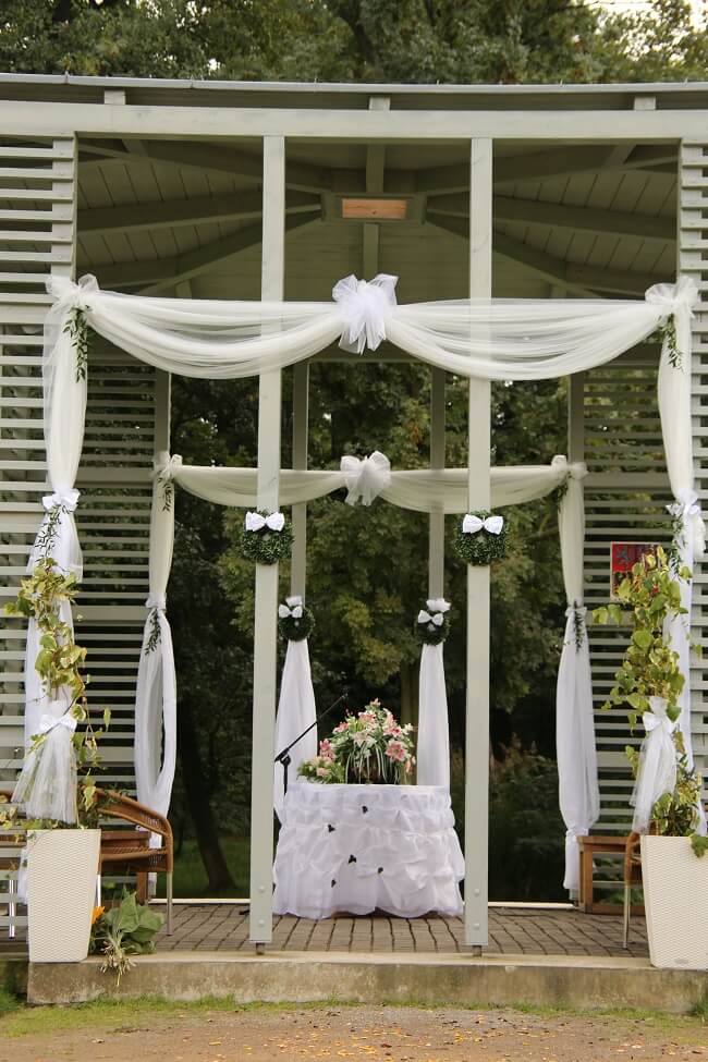 Svatební altán v zámeckém parku je přímo stvořený pro romantickou svatbu pod širým nebem. Obřad je možné uzavřít nejen ve svatebním altánu, ale i v obřadní síni zámeckého areálu Ctěnice.