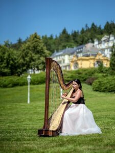Home/Mediální soubory/Harfistka Katarína Ševčíková, na zahradě